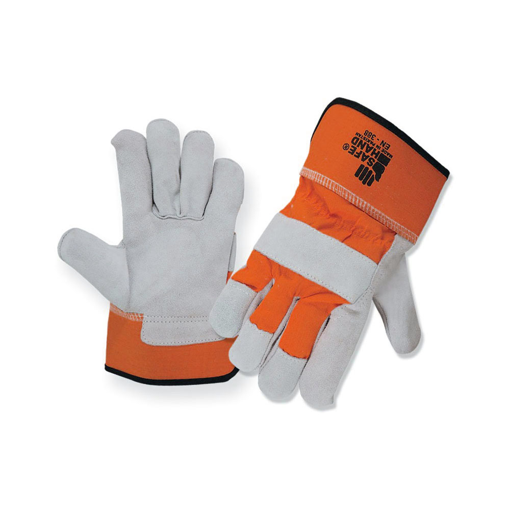 Working Gloves Double Palm M/O Split Leather Back Blue Drill Cloth With Rubberized Cuff & Lining Stitched With/Without Kevlar Thread