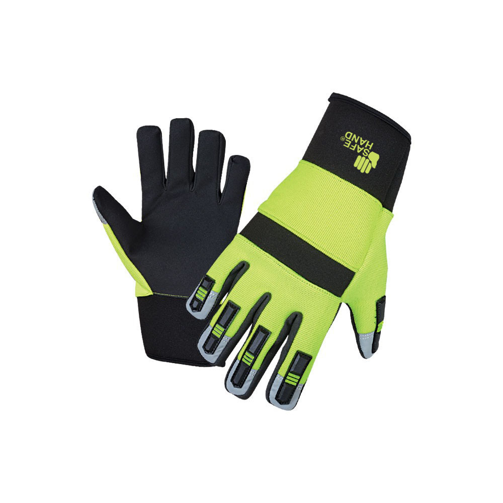 Economic Impact Gloves Synthetic Leather Palm Yellow Fluorocent Polyester Back With Impact Prof On Fingers & Thumb Neoprene Cuff / Knuckle Cut.