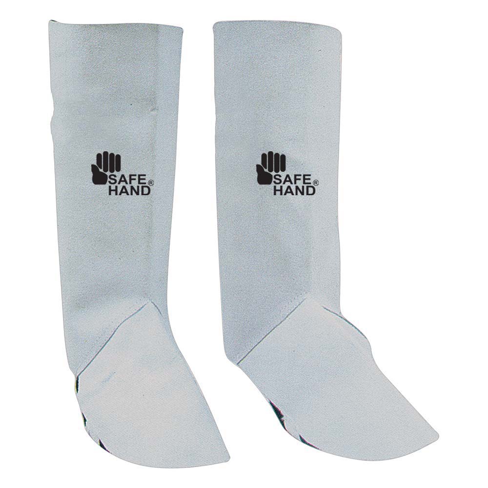 Welders Shoe Cover made of grey cow split leather with Velcro Closure.
