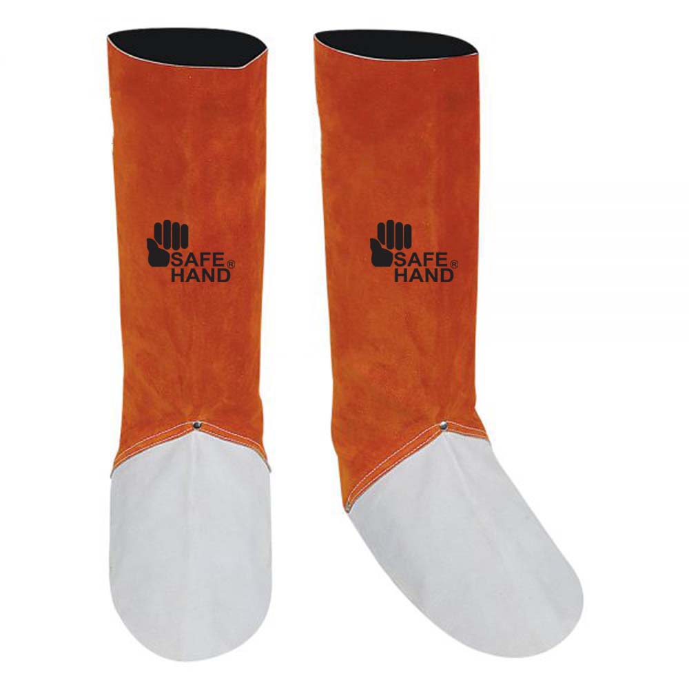 Welders Shoe Cover made of brown/grey cow split leather with Velcro Closure.