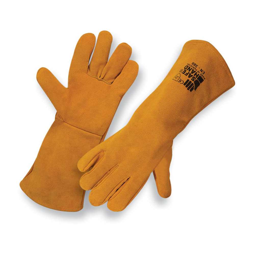 Welding Gloves M/O Yellow Color Split Leather Welted Inside Full Lining Stitched With/Without Kevlar Thread Grade = A, A+B, B+C Size = 35cm, 40cm